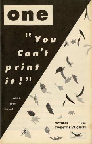 When One: The Homosexual Magazine began to send its fledgling, pro-gay publication through the mail in 1953, it ran into trouble. The U.S. Post Office called the publication obscene and banned it from being mailed.
